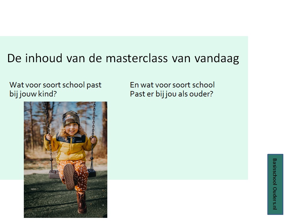 - Een beeld van wat bij jouw kind en jou als ouder past.